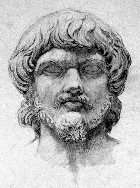 Pierre Henri de Valenciennes (1750-1819), este un pictor francez, a studiat pictura la Academia regală din Toulouse între anii 1770-1771 şi a fost elevul lui Gabriel-François Doyen (1726-1806). În timpul carierei sale artistice el a efectuat mai multe călătorii în Italia, în 1769, iar între anii 1777-1785 se va instala la Roma. După şederea lui în Italia artistul revine în Franţa şi se va stabili la Paris, unde va realiza cea mai mare parte din cariera sa artistică: în anul 1784 este admis la Academia de pictură, obţine în 1805 medalia de aur la vestitul Salon unde el expune în mod regulat din 1800 până în 1810, pe urmă este din nou medaliat în 1814 şi 1819 şi a fost decorat cu Legiunea de onoare. Pierre Henri de Valenciennes, artist de mare talent, este considerat ca fiind unul din principalii precursori ai peisajului modern. Desenul acesta, de o mare calitate artistică, reprezintă un cap de Dac realizat după numeroasele figuri de Daci reprezentaţi în scenele Columnei lui Traian (Roma). După toate probabilităţile ar fi vorba de scena LXI: Traian primeşte un sol pileat al lui Decebal. Detaliile profilului Dacului din această scenă de pe Columnă ar putea corespunde cu acest desen al lui Pierre Henri de Valenciennes. Dar, se poate compara şi cu alţi nobili daci ce se află în faţa tribunei lui Traian cerând pace, din scena LXXV: sfârşitul primului război – Dacii cer pace. De asemenea, profilul şi poziţia capetelor acestor Daci ar putea corespunde cu Dacul din acest desen. De remarcat fineţea liniei şi a detaliilor figurii personajului în desenul artistului francez.